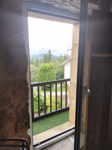 This small rustic inn has been well renovated cheerful almost elegant contemporary feel and the owners have clearly put some thought into the details. The young women who are you hosts are friendly and helpful and even served us breakfast an hour and a half before the normal start time so that we could catch an early flight in Bilbao. The inn has great views situated high in the hills above Durango and is part of a small and pretty compound consisting paradoxically of a large Pelota or Jai Alai court and small stone church. ||||In the headline to this review I use the word "cheap" both positively and negatively. At €90 a night with a good €5 breakfast and a very nice overall ambiance, Garakio Landetxea is feels like good value. Cheap in the negative sense as the i) the frame of stairs to the rooms remains somewhat inexplicably bare 2x4 and there is very little sound insulation between the floors and the walls so you get quite a lot of noise from other rooms. Also the shower stalls are quite small and can be a challenge for larger people. ||||Two other things that should be noted. First, there is no parking next to the Inn. You can drop off but then you have to exit the compound and go to a parking lot that is below the Inn. It is not far (about 50 meters) but you have to walk back up to the Inn along a fairly steep path that may be difficult for older people or people with disabilities. Second, you cannot open the windows very wide and there is no air-conditioning but there is a fan. It was quite hot when we stayed there and not being able to get more air flowing through the room was...