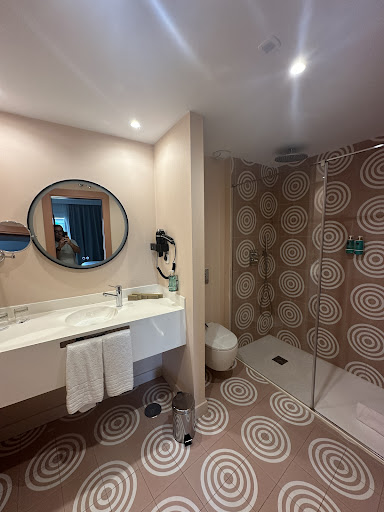 Read moreThis hotel is ideally located within walking distance of the main venues in the city and close to shops, cafes and bars. The welcome is exceptional. Parking is available at €21 per day. It is very tight and initially the system did not recognise our prerecorded number plate. A parking card is given at Reception and then all went smoothly with even a personalised welcome and goodbye on the parking machine. |The hotel is modern, bright and airy with a huge inner atrium for lounging with free coffee, tea or water, ordering drinks and for a sumptuous buffet breakfast with a huge array of choice, including hot food at €18 per person.|Most rooms overlook this area, although some face the outer main road. Our room was spacious with a super king, very comfy bed, great lighting, a shower room, separate toilet and washbasin area. Rituals toiletries, including hair conditioner and mini toiletries were welcome. The hairdryer has the cord attached to the wall and was not quite long enough to reach easily to see in the mirror and the chair too low to see what you were doing, so one slight flaw here. Standing up to dry hair for 30 mins. isn’t great. 2 bottles of water and nuts were also free. A safe and fridge, as well as a coffee machine and tea made our stay perfect.|All staff smile and are wonderfully helpful. On leaving a hand written thankyou card of the city was given to us; the car windows cleaned and another thankyou card left for us. Lovely touches that made guests feel valued. Highly...