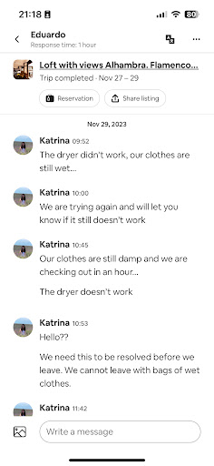 Prepare to have zero communication with the host if you stay here. The owner never responded on the Airbnb app or anywhere and is out of town every single day. The dryer in the apartment is broken and the owner never responded to me or offered resolution. I asked about storing our backpacks which the owner also never responded. The owner even blamed me for not asking him in person (there was zero instruction that I can ask anyone in person, he is out of town every single day, and there are four floors in the building with at least 3 apartments on each floor. How could we know which one to knock on???). Even a hostel would have a better experience than this. There are a lot more places in Albaycin that offers something similar for at least basic communication. Not to mention the owner charged 5 star hotel price for this place. Absolutely...