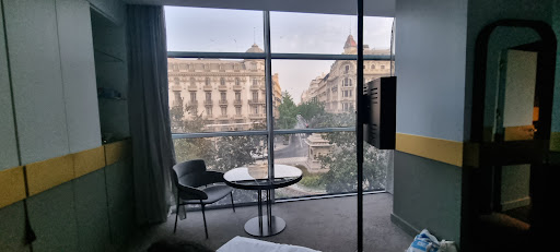 Pros: nestled in a central location with main shopping streets, tourists attractions & restaurants within 5min walk. Great view of the fountain from your room. Modern and welcoming lobby with cafe and restaurant. Prime location. Quiet rooms. Good AC.