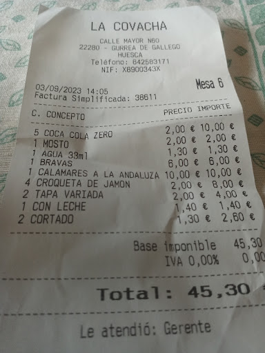 Read moreFuimos un grupo de amigos a almorzar a este bar de Gurrea de Gállego y desde el principio el dueño (no español) estuvo muy pesado, dándose mucho bombo, cada uno de nosotros pedimos distinto: pincho de tortilla, bocata de francesa y huevos con jamón, todos con vino y gaseosa; todo lo servido estuvo bien, pero el problema vino al final, cuando nos cobró a cada uno por igual (10€) y educadamente se le dijo que no era normal. Tampoco nos quiso poner un chupito, como está en la carta, argumentando que era "error". Se puso a discutir e increpó de malas maneras, por lo que pagamos y nos salimos a la calle. Estando fuera del local empezamos a oir discusiones, gritos y ruidos de golpes, saliendo una persona a empujones, que suponemos intentó defendernos. En definitiva, un BRONCAS y NO...