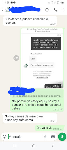 Read moreEl lugar está bastante bien, en una zona bonita y tranquila. Los apartamentos son bonitos, limpios y tienen de todo, a eso no hay ninguna queja, incluso las indicaciones son correctas y claras. Lo que no nos ha gustado es que no tuviera las cunas para mis 2 bebés ya que lo había confirmado ( en airbnb) y al final no estaban, tampoco las formas de ella ya que al quejarme de que no estaban a las 22.00 me dice que si no estoy contento pues que cancele. A esas horas de la noche y con 2 bebés no se puede hacer eso y a esta persona le falta tacto. Lo bueno que había soda cama y me quedé con una niña yo y mi mujer con la otra en la cama. Al irnos le deje todo ordenado, con la basura en bolsas y recogido para que no tuviera demasiados problemas al limpiar. To Magdalena: If you cant communicate properly in spanish you can say it and then we can do so in English.