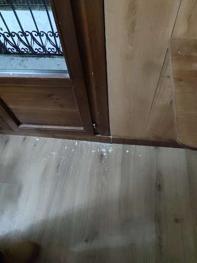 Problemas de seguridad y mantenimiento Por si lo anterior no fuera suficiente, la puerta del baño se cerraba sola con el pestillo echado, sin que hubiera nadie dentro, lo cual ocasionó varios inconvenientes. Este tipo de fallos en la carpintería y en los sistemas de cierre representan un riesgo real, especialmente si se considera que algún niño pequeño o persona mayor podría quedar accidentalmente encerrado.
