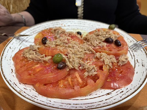 Para el precio que tiene el menú diario (16'95€) comer no se come nada bien. Te sale más rentable coger una bolsa de patatas fritas en la gasolinera que pagar por ellas 16€. De primero pedimos huevos rotos y macarrones boloñesaa. Los huevos rotos consistían en media bolsa de patatillas de bolsa con dos lonchas de jamón tieso encima y dos huevos fritos. Los huevos riquísimos, lo demás te lo comes porque tienes hambre . Los macarrones boloñeda eran simples, macarrones con una mezcla de tomate frito de bote por un lado (frío) con algo parecido a salsa boloñesa por otro lado. Al mezclar las dos salsas pues tienen buen aspecto y todo. De segundos ambos pedimos secreto ibérico con salsa de mostaza y miel.... A simple vista tenía buena presentación, tres filetes de secreto no muy grandes con salsa de mostaza y miel y guarnición de patatas a lo pobre con pimientos "asados"... Un mojón igualmente, el secreto duro y con sabor a chamuscado, las patatas frias y resecas ( a saber desde cuándo hechas) y los pimientos "asados" aparte de fríos de lata jajajajaja. Lo único que mereció la pena fue el flan del postre y la botella de litro y medio de agua. Por lo demás lo dicho, a la gasolinera a por unas patatillas y una Cocacola y seguir camino. Para colmo en la carta te pone café o postre, pedimos un flan y un café y nos cobraron...