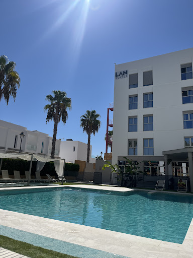 Read moreVacaciones en La Antilla en éste nuevo edificio de apartamentos en tan singular localización. Lo primero que hay que contar es su ubicación, inmejorable, a un paso de playas, paseos, bares y restaurantes. El edificio es muy bonito, accesible y nuevo, sobre todo nuevo. Hay fácil aparcamiento, al aire libre y zona para carga de vehículos híbridos, no eléctricos. Hay recepción y limpieza. Los recepcionistas muy atentos y con ganas de ayudar, un 10 para ellos. Si bien no hay limpieza diaria a no ser que la contrates, te proporcionan un kit con estropajo, trapo y jabón de platos, además si quieres puedes tener escoba, recogedor, tendedero incluso hay cuarto de limpieza con lavadora y secadora. En mi caso contrate una suite para dos, sin terraza,vista piscina, bien, acabada, tres zonas, salón comedor, kitchennette y dormitorio con cama grande, cómoda sin más. El baño tiene plato con gresite en suelo, mampara, el wc tiene grifo limpia traseros con chorro a propulsión que te deja el ojete nuevo, y el suelo mojado. Hay gel / shampoo de cortesía y secador de pelo. La piscina es de cloracion salina, tiene buen acceso, está justo al lado de un gimnasio apañado, hay césped artificial rodeando la misma, las hamacas están muy bien y no se si habrá suficientes con un lleno en los apartamentos, tiene un horario de 11 / 15 horas y de 17 / 21 horas, si hay dos horas siesta, se supone, porque con niños en los apartamentos hay guerra civil con lanzamientos de objetos variados, cosas de niños. Muy...