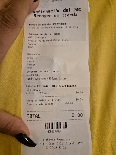 Para empezar, una de sus trabajadoras mientras me atendía estaba hablando con otra compañera mucho más joven criticando a una clienta que ya se había ido. Eran casi las 9:40pm y compré una silla de escritorio, que tenía que recoger en la almacén, al pagar esta mujer, con voz vacilona me dice; deberías ir yendo ya a la almacén si no, te veo mañana. (Que menos que avisar que alguien va a recoger un pedido) quería ir con el coche pero había mucha cola por el collect in de ikea. Así que fui andando, a mi sorpresa una caja de más de 80 cm de larga y 22 kg de peso, me la dio un chico, soltándome la caja delante mía. Le pedí que me diese el carro que estaba justo delante en la almacén para llevarla al coche.
