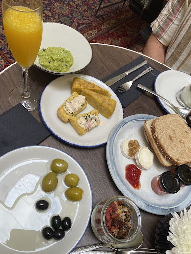 Read moreLooked cute online (a renovated mansion from the 19th century) and didn't know what to expect to be honest. Upon entering late night (when we arrived like bats in the night), we were greeted by staff who was lovely and accommodating and offered us some Veuve and water. Nice bonus. The clerk even upgraded us to a room that had a small balcony, with a window overlooking the side street, and a theater below. The location is Chueca. Close to Gran Via. Great location as it surrounds many cafes, restaurants, banks, and boutique shopping. Also, not in the exact center of the hustle and bustle (meaning, a bit quieter). The lobby really is the beauty of the hotel. Eclectic art in the various maze (I got turned around several times) of the public rooms surrounding the lobby, from old white suitcases, to, shelves of books that adorn the walls inside the elevators (if you get stuck, you can catch up on your reading), art deco furniture, a caged check in desk adorned by ivy, oversized accoutrements, navy blue walls, and an area next to the check in station with room for mini muffins, fruit, an espresso machine, champagne, sugared candies, all complimentary. The service was outstanding during our entire stay. The staff, bent over backwards to help in anyway possible.