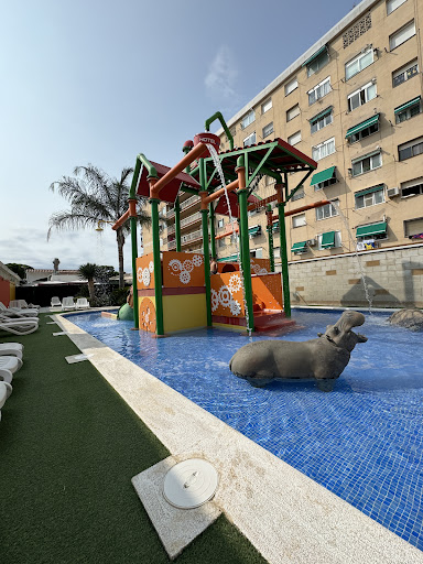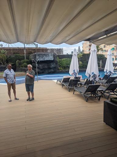 The pool was fine but these fancy photos with waterfall and jacuzzi are misleading and disappointing. The waterfall was running for maybe 5 minutes a couple times a day. I have seen bubbles in bottom jacuzzi maybe three times for similar time. There was another jacuzzi on the top of waterfall but when we got there it had cold water and barely any bubbles. What’s more important the surrounding of that pool was also dirty and had mold/dirt signs on the while elements around the pool.