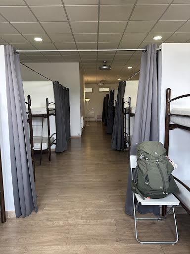 Cosas a destacar sobre las habitaciones es que son muy monas y van bien preparadas. La idea de los boxes es muy buena porque así guardas un poco de privacidad entre peregrinos, yo me quedé en la compartida e igualmente estuve genial porque son de seis. Y una cosa que se me iluminó la cara cuando lo vi fue que había enchufes al lado de la cama con una mesita, así te ahorras el dejar el móvil con los de los demás en una esquina apartados como pasa en otros sitios.