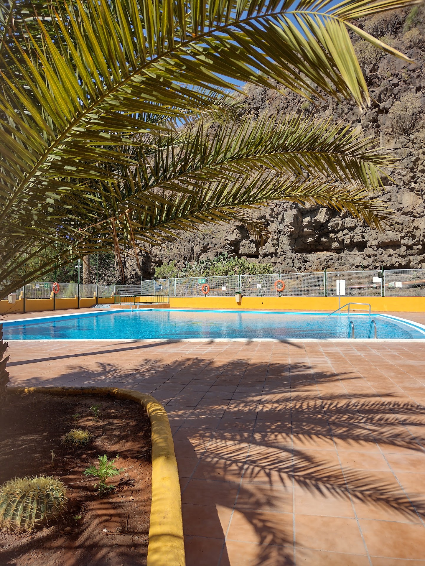 The best campsite we stayed on in Gran Canaria. In a beautiful location looking up to the mountains. It has all the services you need as a motorhomer. The site had a restaurant /bar, swimming pool at 1 euro per day, glamping huts, boules area, an outdoor stage for the club entertainment, several clean shower/toilet blocks, dish washing and laundry area with washing machine and tumbler drier and motorhome service points. The water and electric was scattered around camping area edges. The electricity tripped out often and the wi fi never worked unless you were in the bar or stage area. The site was gravelled so difficult for walking for someone with mobility issues and the disabled area was close to the disabled facilities. Their was a nice garden area to stroll around and a nearby village in walking distance. They have Rock the Mountains on a monday in the restaurant. We were parked near to the road and did get some night disturbance from speeding traffic overnight screeching up and down. The price was very...