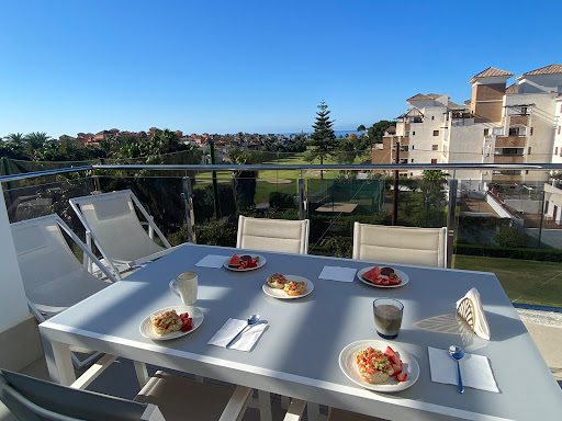 Elegir estos apartamentos es un acierto 100%. El proceso de reserva y checkin, todo automatizado a través de web y cerraduras via Bluetooth con app, ofrecen un proceso ágil y muy sencillo. Además de que la ausencia de llaves es un plus para evitar preocuparte de ellas. La interacción con David y Emma ha sido excelente en todo momento. Si hablamos del apartamento, una pasada. Totalmente nuevo y diseñado con excelente cuidado. Amplio, luminoso, cómodo y muy limpio. En el caso de mi apartamento, vistas preciosas al campo de golf y con el mar al fondo. Tienen muchos detalles, como dejarte café y leche para tu llegada, productos de limpieza, sal, azúcar, pastillas para el lavavajillas, etc., lo típico que en muchos sitios acabas comprando un bote y luego dejas allí. Ellos te lo suministran para empezar. Todo lo necesario en cuanto a menaje y electrodomésticos. Y televisiones muy grandes y en todos los dormitorios y salón. Por último, la urbanización, incluyendo garaje, era muy bonita, Con espacios ajardinados y bonitas piscinas. Además, los vecinos con los que nos encontramos, muy amables con nosotros. Hay un supermercado al lado para hacer compras, y otros muy cerca en coche. Los apartamentos están muy cerca de la playa y de lugares de interés, como la propia...