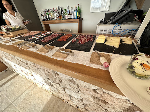 El desayuno super rico. Muy agradable tomarlo en las mesas alrededor de la piscina. Los productos se notaba que eran de calidad: buenos quesos, buen fiambre, buen pan, el zumo de naranja natural recién exprimido (se oía cómo lo exprimían al momento en la cocina), la bollería nada industrial, y siempre había un "bizcocho del día" riquísimo. Bruno, el empleado a cargo de atendernos, super amable y educado. La cocinera, no sabemos su nombre, también muy simpática y con muy buena mano para la cocina. Prepara unos bocadillos deliciosos para ir de excursión.