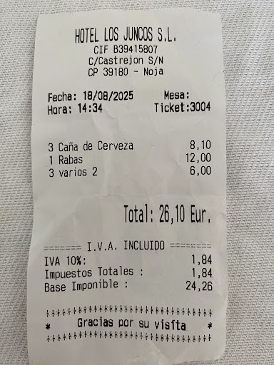 Read moreTerraza de la cafetería vacía (luego supimos porqué). Elegimos esta porque las de alrededor estaban llenas. Preguntamos si podemos sentarnos sin ser clientes del hotel. Nos dicen que si. No hay servicio de terraza (dato que no justifica los precios posteriores). Pagamos y no nos dan ticket. Lo pedimos al ver el elevado precio. Nos cobran 3 unidades de “varios 2” (solo habíamos pedido de bebida 3 cañas y un tinto de verano). Explicación: “No, es que las rabas son a 14 € (!!), pero como no he adaptado la máquina, pongo un suplemento en otros productos”. Explicación real: “No son clientes del hotel, les cobro lo que me de la gana y no les doy ticket”. Denunciable @nojayuntamiento . Hoteles hay mucho mejores (Las Dunas, Marítimo, Liber, etc), y cafeterías no digamos (llevo veraneando en Noja 30 años)....