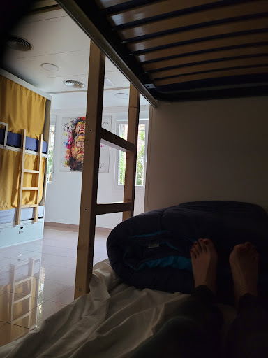 The sleeping area - a women only dorm was available if you want this, but book early. Curtained beds with a light, shelf, recharge facility. Lockers and an area away from sleeping for the runners and poles. Bedding and a towel were supplied. Comfy, clean bed. Breakfast was great . It was easy to pick up the Camino path from here. I would highly...