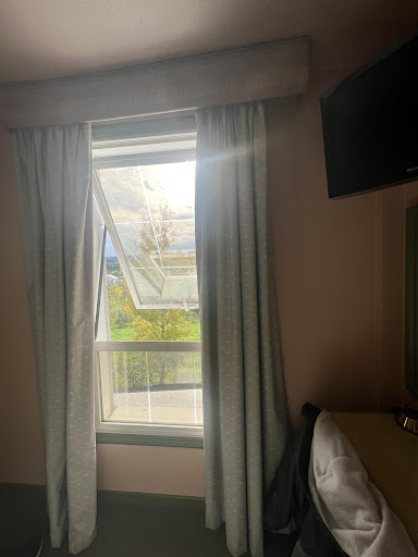 Read moreHet hotel ligt aan de zuidkant van de stad Ourense (naast het ziekenhuis). Dit is 2 à 3 km verwijderd van de oude binnenstad van Ourense. Dus voor een bezoek (te voet) aan de kathedraal of de thermaal baden ligt dit hotel niet goed. De hotelkamer keek uit op een drukke rotonde maar van verkeersgeluiden hadden we geen last. Ook niet van de ambulances die regelmatig bij de eerste hulp post moesten zijn. De kamer kon wel een hele goede schoonmaakbeurt gebruiken. Ook diende er de nodige reparaties aan plafonds en wanden uitgevoerd te worden. Het hotel heeft een eigen parkeerplaats en een eigen parkeergarage, die gratis zijn. Je moet echter wel een zeer goede chauffeur zijn om de auto in de parkeergarage te parkeren. De toegang tot de parkeergarage is via een smalle ‘gang’ met 2 bijna haakse bochten. Er zijn stukken beton uit de muren gekapt om toch maar de bocht te kunnen maken. Parkeren in de parkeergarage van het ziekenhuis is ook een optie, maar daar moet je betalen. ||Het hotel serveert geen ontbijt. Daarvoor kun je terecht bij het aangrenzende cafetaria. Via de receptie kun je doorlopen naar het cafetaria. De keuze is heel beperkt. Toen wij het ontbijt wilden afrekenen en te kennen gaven dit met een creditcard te willen doen, moesten we 8,90 Euro betalen. Bij het tonen van onze beurs en daarmee het signaal gaven contant te willen betalen, hoefden we maar 4,10 Euro te betalen. Het cafetaria is eveneens geen aanrader, vieze tafelkleden, schilderijlijsten waarop een dikke laag stof ligt en een zonwering vol watervlekken...