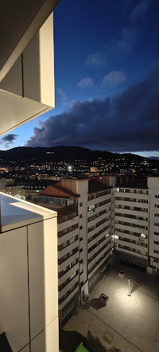 Pros: -Helpful, attentive, and polite staff. -Clean premises and modern decor. -Large Reception Desk with English speaking staff. Map of Oviedo main sites available. -Spacious Lobby with plentiful seating. Great scented smell as well! -Free WiFi, password on check-in. -Two lifts to all floors. -Room 501, twin single beds. Keycard entry. Two door cupboard hanging space and shelves, electronic safe (free). Fridge (2x complimentary bottles of water). Wall-mounted LG TV. Table with upholstered chair. Beds with bedside tables. Telephone. Mirror. Suitcase stand. Multiple power sockets with USB charger ports. Effective and quiet air-con. Views of construction site opposite and Sacred Heart of Jesus Monument statue on Monte Naranco hill in distance. Spacious bathroom with walk-in shower, toilet, twin basins, Nuvo branded toiletries, large mirror, hairdryer, heated towel rack. -‘supera’ gym & spa - special rates available for Nuvo guests. Price depends on time of week. -Parking. -Checkout 12pm. We were kindly allowed to leave a suitcases with Reception as our train to Gijón was later in the day.