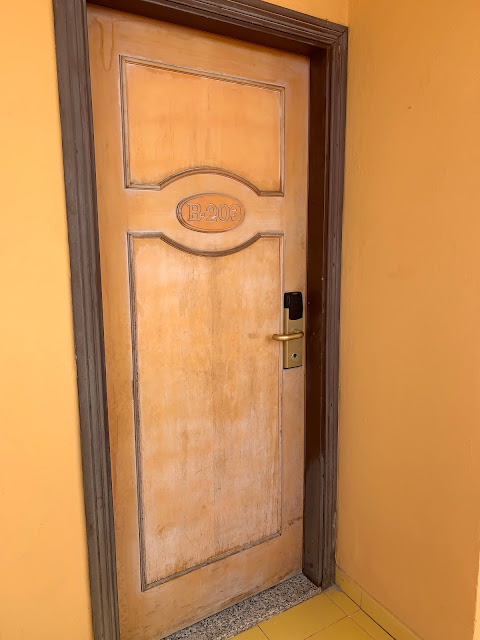 From the moment we arrived, it was evident that this place was in a dilapidated condition. 16 year old fire extinguishers , Broken tiles, worn and peeling dirty paint, and dirty, worn, unvarnished doors greeted us as we made our way to our room from hell.