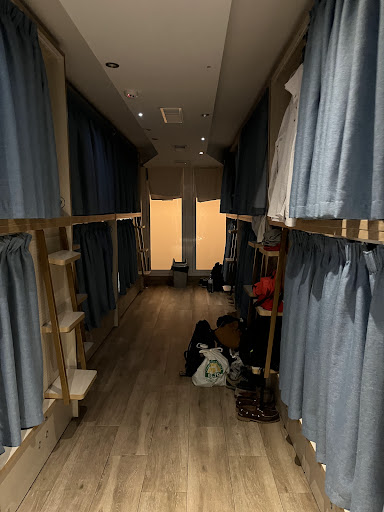 There's a big common area with sofa, tv etc where you can hang out and meet the other guests or (the very nice) staff, but if you want your privacy/rest the beds are super comfortable with curtain, lights & power outlet. During the night it was comfortably warm, but the staff offered to change AC settings if needed. I slept with earplugs and was always well rested for the next day :)