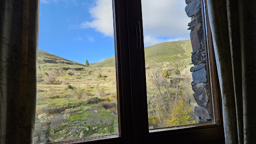 It is located in the beautiful pueblo of patones de arriba, and fits right in. Lively views. Charming streets and close to everything. Quiet and tranquil, homely, cosy and comfortable.