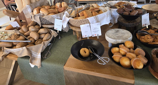 There is a SuperDino supermarket 3mins walk from the front of the apartments. Cross road in front of hotel and walk behind white building ahead- Gold hotel. It has freshly baked goods all day.