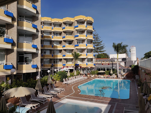 Read moreThis hotel is excellent value for money. In a place full of hotels, we were struggling to make a decision.|We had certain requirements. We didn't want to spend a lot of money on a fancy hotel but wanted a modern looking room. We wanted to be near the sea and have a sea view from our balcony.|We also wanted to have self catering amenities in our room.|We had all this and more. We got a free breakfast thrown in and a great location.|We were in between the noise and bustle of Playa Del Ingles and the quieter more upmarket area of San Agustin. We preferred the quieter San Agustin but both were within walking distance.|There were 2 small shopping malls in both areas, a 10 minute walk away where as well as the usual shops selling clothes, there were bars and restaurants.|We enjoyed long walks in both directions along the sea front as far as the lighthouse at Maspalomas in one direction to the Bahia de Feliz in the other direction.|We also benefitted from having the parque tropical bus station a 10 minute walk away and were able to visit Puerto Rico and Las Palmas on the bus.|The latter is well worth a visit.|Other pluses, the sun beds by the pool were never too busy and because it was situated below road level we were sheltered when it became windy.|Finally the staff...