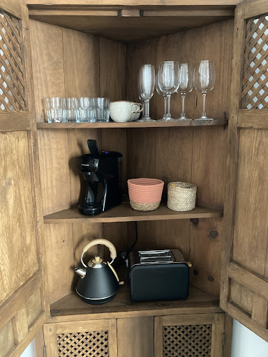 Very impressed, was so beautiful done, high quality craftsmanship and high quality products and appliances. It has everything you need from coffee machine, toaster, big fridge, cooker and microwave and lots of nice details with traditional style. Bravo ! Totally...