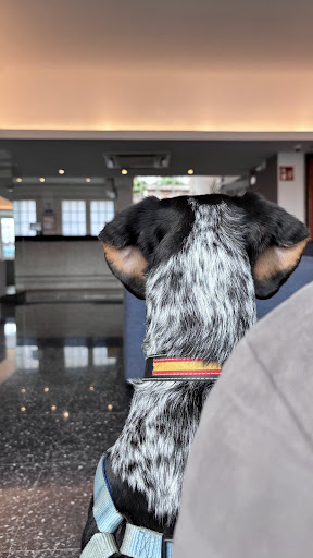 Very nice hotel, we enjoyed our stay. We were traveling with a dog and the facilities for the dog were good as well. A small playing area with a fence for the dog was really nice, and during breakfast we could take her on the terrace (as the dog is not allowed in the breakfast area). Breakfast and the staff was really good. Nice diversity of food and drinks. Super friendly and har working staff to make breakfast service a good start of the day. Rooms really nice as well with nice view, super clean everyday. Maybe a small kettle and some coffee/tea could be nice to improve the room. Fridge quite large to store some drinks. Nice pool, not very large but fits to the hotel, during our stay not too busy at the pool and all the time beds/seats available. Small disadvantage after around 17.00 hrs sun disappears behind the hotel building. which made it less inviting to stay till later in the afternoon around the pool. Maybe a few parasols during day time would be good as well. Parking space OK, but quite busy (full) during our stay. Nearby parking at the restaurant next door is good alternative. Charging of electric cars at the parkingplace very useful, as the options for fast charging in the area are limited (although charging in most of the parking garages in San Sebastián is possible and works well). During our stay all the time 1-2 chargers (out of 5) were not working. With the V2C app it works fairly easy, if not the hotel staff at the reception is quick and friendly to support. Only point of attention is that other cars park/occupy the charging places (while not EV or not charging). Hotel is located on a hill, which offers you a very nice view from the room/pool/terrace, but also means it is a bit of a walk to the old town for dinner in the evening. We were with a car, but without it is at least 30 minutes (nice) walk to the city centre (after 10 minutes you walk next to one of the best city beaches in Europe). A bus stop is close to the hotel as well, 2 minute walk. We enjoyed very much our stay, as it is a perfect base to stay with a dog, enjoy the pool, be close to the beach and explore San Sebastián and the...