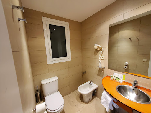Rooms Air con in some rooms - check if important. The room to the rear we had was conditioned and it was needed. Decent size but European standards with very generous toiletries and towels in bathroom. TV had a small selection of cable channels but not many in English. Possible to cast to the TV from your tablet/laptop if you take a dongle. Clean and well presented, with a small balcony (not usable). Front rooms have views over the beach and sea. No working safe in the room - had to use the reception safety deposit boxes. No coffee or tea making facilities in our room.