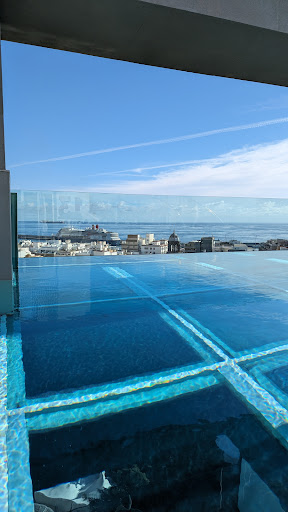 Nos decidimos por este hotel, aunque no era nuestra primera opción. Nuestro viaje fue bastante de última hora y el hotel al que planeábamos ir tenía disponibles sólo las suites más caras. Así que estuvimos mirando y este fue el que nos gustó más. ¡No nos equivocamos! Es prácticamente nuevo (creo que abrió en 2024). El precio es muy razonable para un hotel de este nivel. Las habitaciones son amplias y el servicio es espectacular. Se encuentra en pleno centro de Santa Cruz, con numerosos restaurantes y tiendas cerca. A unos minutos hay un centro comercial con un supermercado Superdino. También el tranvía tiene una parada en la zona. En la plaza que hay delante se encuentra el Museo de Bellas Artes y es un oasis de tranquilidad donde se puede pasear o sentarse en sus jardines. ||Las habitaciones son muy modernas y las camas, muy cómodas. Muchos puntos de luz y aire acondicionado regulable. Había unos cargadores inalámbricos para móvil, pero parece que eran para Iphone y poco más. Al menos había también enchufes cerca de las camas y un teléfono retro de rosca para llamar a recepción. La mesa escritorio era grande, aunque echamos de menos que hubiera dos sillas y no una. Si quieres comer algo, uno se ha de sentar en la cama. El minibar es un mini frigorífico real, que usamos mucho y que además te incluía agua y zumos gratis (que nos repusieron cada día). También, caja fuerte, espejo de cuerpo entero, hervidor de agua con té y café y abridor para zumos y agua. No hay armario como tal, pero hay un gran perchero, estantes y un sitio para poner la maleta, con dos cajones grandes debajo. ||El baño tenía una pequeña pega y es que era un cubículo de cristal dividido en el retrete, con su puerta, el lavabo en medio y la ducha doble (muy buena) a la derecha, también con su puerta. No hay problemas de privacidad, pero es cierto que si alguien se levanta de noche, la luz puede molestar al compañero de cuarto, porque ilumina todo. Aparte de eso, el baño muy bien, con gel y lociones que olían estupendamente a mentol y eran muy frescas. Hay secador, toallas de ducha y manos, cepillo y pasta de dientes, peine y pañuelos de papel.||El desayuno era muy bueno, con un poco de todo. De salado había huevos, beicon, salchichas, tomates, champiñones, tortilla de patata, quesos, fiambres… También varios tipos de dulces y pastelitos (tortitas con sirope, palmeras, cruasanes, napolitanas, gofres...) , panes en rodajas para hacer tostadas y panecillos, cereales, etc. En otra mesa había fruta de muchos tipos y vegetales para hacerse ensaladas. Una máquina hacía zumos de naranja natural, más otros zumos en jarra, agua fresca, distintos tipos de leche y otras dos máquinas te proporcionaban buen café de Lavazza e infusiones. Así que una amplia variedad para todos los gustos. La música durante el desayuno era muy buena, funky y animada. El desayuno se servía en el restaurante del hotel (de fusión y comida mejicana a las horas de las comidas, que no probamos). ||La zona de la terraza era muy agradable. La piscina infinita es muy original y con vistas tremendas. Quizá puede dar un poco de miedo meterse al estar suspendida en el aire y ser transparente, pero a mí me gustó. La socorrista te proporcionaba toallas y las hamacas eran muy cómodas, aunque un poco escasas, porque siempre había gente esperando. La piscina tampoco es muy grande y tuve suerte que cuando fui no había mucha afluencia. Creo que sólo se permitía entrar a unas 5 o 6 personas a la vez. El horario de la piscina era de 10:30 a 17:30. Una pena que no estuviera al menos hasta las 20 horas o así en los meses de más calor.||El único pero que le encontré es la música del bar de la terraza. En teoría es un bar chill out y por las mañanas la música estaba bien. Pero por la noche todo era reggaetón y trap del duro. Será que tenemos gustos muy distintos, pero nos bebimos los cócteles (muy buenos) y nos fuimos porque era infumable. Si hubiéramos estado a gusto, nos hubiéramos tomado algo más. También sugeriría que los asientos de este bar sean algo más accesibles, porque iba con mi padre que usa muleta y sólo quedaban asientos sin respaldo o altos. Muy amablemente una pareja nos cedió su mesa baja cuando nos vieron, pero es una pena que no haya más asientos cómodos en general.||El personal fue todo muy atento. En recepción nos guardaron el equipaje tanto a la llegada como al marcharnos. Si quieres hacer una salida más tardía, si hay disponibilidad, se ha de pagar extra por cada hora, aunque nos dejaron quedarnos una más sin cargo. La decoración de la entrada, muy moderna, con algunos sofás y con una tienda de regalos. Así que muy buen hotel, muy contentos con nuestra estancia (excepto por esos pequeños detalles, que no son graves) y ojalá...