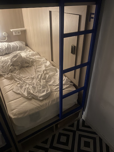 Other than the malfunctioning, abused sliding door lock of the bathroom, my ground floor 6-bed room was great. Free towels, sheets changes daily, Black out curtains and card key lockers and doors. And soda and snack bending machines, kitchen, washer dryer machines are all next to my room. Lots of table and seats for scattered lounging for the owl guests.