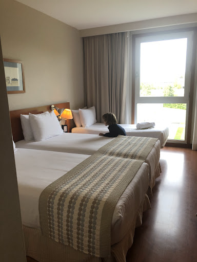 Este hotel de la cadena Eurostars, está alojado en las afueras de Santiago, pegado a la autopista de peaje AP-9, por lo que los accesos-salidas son muy sencillos si vas en coche. Dispone de un aparcamiento gratuito dentro del recinto totalmente gratuito y bastante amplio, con espacio de sobra.