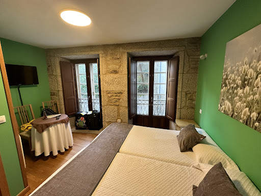 Read moreNuestra experiencia con este alojamiento ha sido malísima. Y eso que de las instalaciones no puedo hablar, porque ni siquiera llegamos a entrar. Solo puedo decir que su ubicación es buena, muy cerca de la plaza del Obradoiro. Aunque esto, lógicamente, es un problema en cuanto a temas de aparcamiento. Digo que no llegamos a entrar porque resultó que, a pesar de tener hecha la reserva con un mes y medio de antelación, al llegar allí, resultó que nuestra habitación se la habían dado a otra persona y que no disponían de más habitaciones. Se habían puesto en contacto con nosotros días anteriores, por lo que sabían que íbamos y todo estaba confirmado. Nos habían dado un horario de recepción y, por si llegábamos más tarde de esa hora, nos habían dado las indicaciones sobre cómo entrar y coger la llave. Llegamos a Santiago antes de que se acabara el horario de recepción y, para nuestra sorpresa, no había nadie. Al intentar coger la llave, el cajetín estaba vacío. Al llamar al número de contacto, el señor que nos atendió no nos dio explicación alguna sobre lo que ocurría, nos dijo que nos llamaría en dos minutos. No llamó, tuvimos que volverlo a llamar, no nos cogió el teléfono, y lo tuvimos que llamar desde otro número. Nos dijo que la solución era complicada porque viajamos con un perro, y que eso dificultaba encontrar otro alojamiento. El error no era nuestro ni de nuestro perro, sino suyo por no haber gestionado bien las reservas de alojamiento. Cuando le pedimos hojas de reclamación, no disponía de ellas y, de haberlas tenido, tampoco nos las habría dado fácilmente. Finalmente, nos buscó otro alojamiento y asumió los gastos que ello conllevó. No pidió disculpas, pero al menos respondió por su error ofreciéndonos una solución. Eso sí, en un albergue sin ascensor, en la cuarta planta y en una habitación diminuta. Pero al menos, tras perder toda la tarde y darnos una mala experiencia durante nuestras vacaciones, al menos pudimos dormir en algún sitio con nuestro perrete...