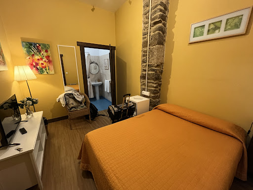 Read moreA 6 minute-walk from the train station, this charming albergue is located very near el camino itself. The owner was utterly nice to me on my first stop before I started the way of Saint James in Sarria and she gave me all kinds of advice. They provide disposable fitted sheets and a pillow case included on the price. I was lucky to get the room for three people that had a washbasin, but there is a big room with loads of bunk beds as well. There were school groups, but it was quiet at night. The bathroom was fairly new and clean and it has an inner patio to sit and eat al fresco. Wi-Fi reception is good even inside the bedroom. They were so kind they got me the Credential from the local church before I arrive because I did not get there in time to do it myself. There is a Mercadona (big supermarket)...
