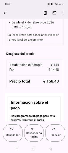 Solo espero que el dueño de dicha instalación se gaste en unas buenas medicinas la subida de precios que hace... Teniendo la reserva CONFIRMADA desde el 21 de febrero del 2025, dicha reserva del 14/2 al 16/2 del 2026 por 158e por toda la reserva! Queriéndolo subir a más de 500e... En esta vida todo llega!!! Y el karma actuara!!!