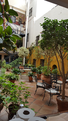 Ā Ā Ā Read moreHotel Cervantes is THE place to stay if you wish to calm down after many hours of travelling, by airplane, train or car. Its mix of tranquility and at the same time the feeling of being close to everything, is hard to beat. By cab from the airport, it takes about 20-30 minutes, depending on the traffic and will cost you around 25 ā¬, unless it's late in the night, then you should be prepared to pay almost 10 ⬠more. If you drive by car yourself, there is a good underground parking but be warned: the place isn't exactly easy to find by your own, unless you know the town very well. The hotel's situated very close to, but not actually in, the very city center of Seville. The reception is open 24 h. Free WiFi is standard, no matter choice of room. The place is worth its four stars, because of spacy rooms, good and friendly room cleaning and a nice inner garden, where you can enjoy a comfortable breakfast. They also have a good laundry service but according to the price list, it did seem a little expensive. The same thing goes for the minibar. But nobody thought good additional service is always free, right?