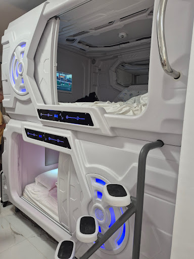 The budget hotel. We’ve taken the capsule room. But. It had best bathroom out of budget hotels we’ve been to (clean, spacious, well supplied). Bed was cozy, and my kids loved the modern capsule experience (granted the screen would be better if it would accept apple or google casting protocols instead of obsolete miracast, but it was still awesome).