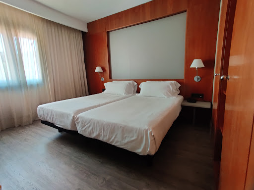 Habitación: 307||Fecha de entrada: 27/11/2021||Tarifa: 70€ (AD)||||A un paso de la estación del tren, y a dos del centro histórico de la ciudad, empotrado entre edificios de viviendas, en una calle tranquila de las que accede al corazón de Tortosa encontramos este moderno hotel de siete alturas con una fachada plana, gris metálica, rota por las alargadas y estrechas hileras de ventanas. Todo recuerda a un hotel de la cadena AC, pero si lo fue, ya no lo opera la marca de Marriott. A pie de calle sólo las cuatro grandes cristaleras desde las que se ve la recepción nos avisan que allí está el hotel. Sobre los vanos, en letras metálicas el nombre del establecimiento. En uno de ellos, las puertas correderas automáticas que nos introducen en el hall.||||Hacia la derecha hay una pequeña y oscura sala con unos sofás, una televisión y la entrada al desayunador. De frente la escalera, y al lado izquierdo el ascensor. Hacia la izquierda se alarga el gran mostrador de recepción. Podría albergar tres puestos de trabajo, pero sólo uno está operativo, cubierto por un metacrilato para protegernos del virus. El trato tras él es tan aburrido como frío y mecánico. Los datos de registro y el pago por adelantado. Preguntamos por el wifi, y nos explican. Preguntamos por el desayuno, y nos explican. Firmados los documentos de bienvenida, nos entregan la llave de la habitación.||||||Unos pasos hacia la derecha y encontramos el ascensor. Moderno, metálico, cuidado y limpio. Puertas correderas automáticas que se abren en un pequeño recibidor con un pasillo a la derecha al que se abren las habitaciones. Paredes oscuras, luces indirectas y puntuales, puertas de madera brillante y suelo de moqueta tupida verde oscuro. Tras la puerta, el suelo pasa a ser de largas lamas de madera gris bastante bien cuidada. Paredes de estuco blanco y en el pasillo hasta la habitación techo de madera con un punto de luz potente. A la derecha los interruptores de la iluminación y la ranura para meter la tarjeta. Un paso más adelante la puerta del baño, de madera con un reluciente y metálico pomo redondeado, y otro paso más, y justo antes de llegar al dormitorio, el dispositivo de control del aire acondicionado, que resulta sencillo de manejar: Un botón para el encendido y apagado, otro botón para la potencia y una rueda para la temperatura. Al final resulta más ruidoso que eficaz. ||||||El dormitorio resulta amplio. A la izquierda hay una mesa de madera gris con un alicatado en el mismo tono y material hasta el techo. De ella cuelga una televisión plana negra. Sobre la mesa un teléfono y una lámpara metálica con tulipa blanca. Bajo la mesa una silla de plástico marrón algo incómoda, una papelera negra con bolsa de plástico y un minibar con un surtido de aguas y refrescos y la puerta de cristal. En el espacio que queda hasta la ventana, un maletero a juego con estructura metálica sencilla y una tapa de madera gris. ||||En el lado derecho se ubican las camas. Dos. Anchas y blancas, cómodas. Vestidas con un suave nórdico muy agradable. Dos almohadas en cada una. Ubicadas bajo una pared completamente recubierta por madera de tono rojizo que enmarca un recuadro de madera gris. Ese mismo gris se repite en las mesillas sencillas, pequeñas, con patas metálicas a juego con el escritorio y el maletero. Sobre ellas hay un teléfono y dos mandos a distancia: uno para la televisión y otro para una minicadena de sonido que hay en el armario. Sobre una de ellas hay un enchufe disponible para los aparatos electrónicos, y sobre ambas hay interruptores para la luz junto con sendas lámparas metálicas de tulipa blanca que ofrecen una luz cálida para el espacio, aunque algo débil para la lectura en la cama.||||La pared del fondo está recorrida por un foscurit que no cierra bien en el centro, y que resulta algo desvencijado. Por delante un visillo de una sola pieza, en tono crudo. Todo ello protege una larga ventana con vistas a la calle en la que se ubica la puerta principal del hotel. La carpintería de aluminio resulta lamentable y por ella se cuela tanto el ruido de la calle, que gracias a Dios, permanece tranquila durante la noche, como el frío y el viento. ||||En la pared restante un armario con dos cuerpos separados por un espacio central iluminado y con baldas en el que está la cadena de sonido, algo antigua, con lector de Cds, casetes y radio. Los armarios, con pequeños tiradores de bola color dorado, disponen de perchas de plástico en las que no se pueden colgar pantalones (no disponen de ese travesaño). Además hay un cuadernillo con los servicios del hotel, un par de mantas envueltas en ruidoso plástico, la bolsa de la ropa sucia y una caja fuerte. El descanso resulta adecuado, gracias a la tranquilidad de la calle y la zona, aunque se escuchan bastante los ruidos del pasillo y de las habitaciones contiguas.||||||El baño resulta correcto de tamaño. Moderno. Suelo y paredes en mármol verdoso. A la derecha una encimera metálica con un lavabo incrustado de porcelana blanca. La grifería metálica está demasiado pegada al extremo del lavabo con lo que casi no da para poner la mano debajo del chorro de agua. Sobre la encimera, además de dos vasos de cristal, las amenities, de marca blanca, envueltas en cajas negras y blancas. El surtido es muy amplio: peine, pañuelos de papel, una pequeña pastilla de jabón, gorro de ducha, set de afeitado y set dental... De la encimera cuelgan dos toallas de lavabo de calidad correcta. Sobre ella, un enorme espejo con algunos defectos de iluminación que acaban generando ciertas sombras: de los cuatro puntos de luz que hay en el techo, uno de ellos está fundido.||||A la izquierda un bidet y una taza de baño con cisterna exenta. Al fondo, la bañera, con una mampara de cristal que protege una ducha de teléfono algo convencional. A los pies de la misma una alfombrilla de baño y un colgador con dos toallas de ducha. Dentro un par de botes anclado
