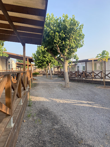 We stayed at Camping Tres Estrellas Mediterráneo near Valencia, and honestly, it’s a really nice place to relax right by the sea. The campsite is literally on the shoreline — you wake up and the waves are right there. Some of the bungalows are brand new and super cozy, with everything you need inside: kitchen, bathroom, AC — perfect for a comfortable stay.