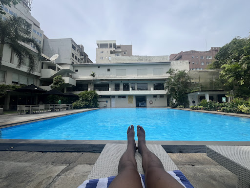 Everything can go wrong in this hotel. Staff greet you professionally and are courteous, kind and engaging. I pay the 2,000 rupees fee for use of the pool. I then head to the cafe for a coffee and a fruit salad. I look for a table to sit at but the only one with free seats hasn’t been cleaned. Having no choice, I sit at that table and clear the table myself. My Americano is brought to me shortly.