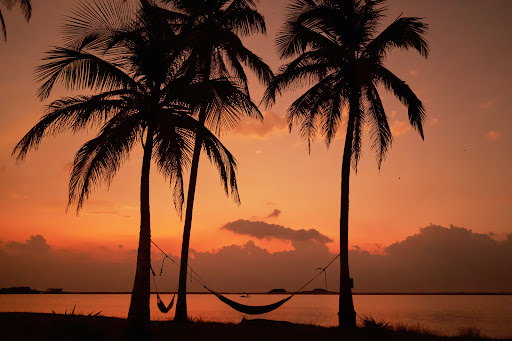 It's beautiful there - a lagoon winding among palm trees and mangroves, a narrow sandy spit between the lagoon and the warmest ocean, and all the windows facing sunset🧡.