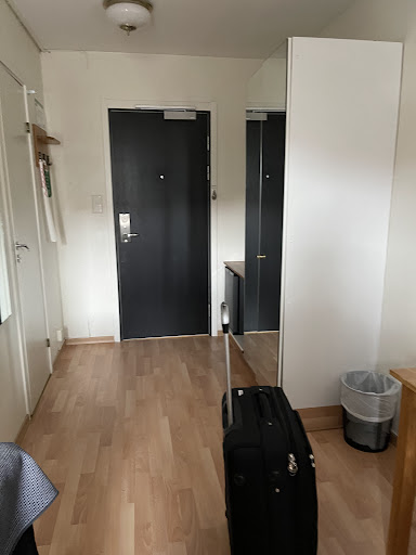 The position of this hotel is pretty good. It is quite central and at walking distance from restaurants and the city center.||We could park with the car on the street, which was not exactly close to the hotel but close enough. The instructions from the staff were though a bit unclear, but we figured it out anyway.||Otherwise, the check in went smooth and we entered the hotel, that still has some details from the 50-60s (I guess), like for example the interior of the elevator and some detail in the corridor.||I had a room on the 4th floor. The wifi worked very well, the room was quite ok in size. It lacked an hanger for the coat and a place where to put the bags. There was a quite ok desk and the bed was pretty comfortable. ||Unfortunately it was a rainy day and the rain disturbed my sleep although I kept the window closed. ||The bathroom was very tiny. It took a while to realize that the shower was just above the sink and in order to take a shower one has to move a wall somehow. It was also a bit interesting to figure out how to open the tap water without getting water everywhere.||The room was reasonably clean, the bathroom could get a touch of freshness (well, it wouldn't help with the strange construction: it felt like being on a night train).||Breakfast was very swedish oriented with not a major choice of food to eat, but quite the essential.||Getting a tray can be comfortable but give a bit "canteen" sensation.||I didn't eat much breakfast that day for a reason or another. What I took was quite ok, but I still think that having a real coffee in the morning (and not one from the machine) is a nice touch in every hotel. The interior of the breakfast restaurant was a bit obsolete, still giving the canteen sensation.||Alltogether the stay at this hotel was quite alright. It didn't exceed expectations, but it met at least the comfort of a decent bed where to sleep, which is something people should not underestimate, although this is not a fancy...