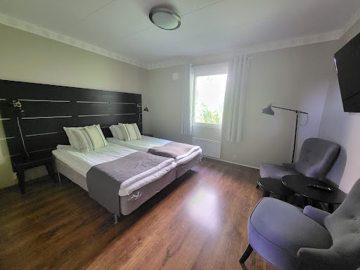 Read moreWe, 2 adults and 2 kids (6 & 12), stayed for a night, on our way from Oslo to Gothenburg and Liseberg.||||The room is rather small, with one comfortable bed for two adults, and a sofa bed for the kids. Nothing fancy, but all what we need for a quick night stop.||||We did not test the dinner at the restaurant or burger joint, but had some snack at the convenience store,and we got what we expected.||||Håby doesn't have much to offer, other than this, but me and the kids did have a walk around the area and into the woods,so it's possible to do a walk in the areas.||||The breakfast is nothing fancy, but a small wariety of bread, Knekkebrød, vegetables, cheese, spreads, eggs, meatballs, sausages, eggs milk, juice, yoghurt, coffee and some pastries.||||We payed aprox 900 SEK, for the room, breakfast and parking, which is nothing less than a bargin!||||So if you just need a short night's stay, along the highway, and nothing fancy, this is a great place to stay.||||The noise from the highway, might6be bothersome, we had one of the rooms closest to the highway, but it quieted down a bit in the evening, so I...