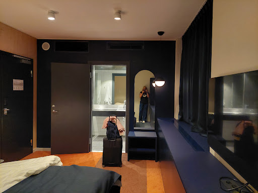 We had booked Superior Double Room (single beds) where each bed is 105 cm wide. Our room was on the 10th floor and when you sit by the window you get the impression of being in a global metropolis. The windows in this corner room is 3, big and facing 2 weather directions. Inside the door is a thin wardrobe where clothes hanger is hidden on the inside, outside hook and a wardrobe door that conceals the iron with ironing board. Two wine glasses are also available (good!). The room has air conditioning who working silent and there is also an instruction on how to use it. The beds are comfortable. Each bed has a bedside table with power outlets. The Internet works well (Free Telia Wifi). A modern armchair for sitting, a desk with a chair and coffee machine, telephone with various speed dial buttons. There is also an empty fridge where you can place your own goods. The bathroom is modern, bright and the lighting can be adjusted. Toilet paper is soft. Just in our bathroom there was also a bathtub. The negative was that the glass door that serves as protection when you shower is too short so water will still flow on the floor. No bathroom products (like some other Nordic Choice) without the shower cream who come from Dove and smell good.