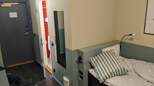 Read moreClean and modern room (at least the one I was in), unfortunately I didnt get the luxury of a beautiful landscape, instead I got another building straight on my face so I had my curtains closed at all times. I had double room with my boyfriend, bed seemed a bit small for a double size, but we both fit on the bed easy. Theres nice closets with mirrors and a free safe for you to use. As far as I noticed the washing can be left at reception and theyll do it for free, you get free sudoku notepad with your room but mine was missing a few pages.. Neat en-suite with a nice walk-in shower. Small and thin pillows but you get 2 each (for two people) and itll get you through the night easy enough. Small fridge would of been nice..