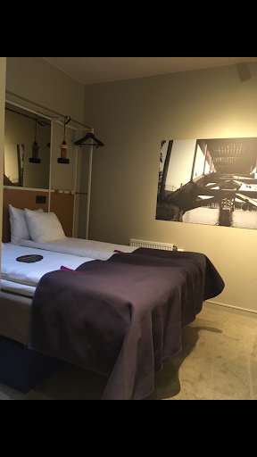 Cons: *Check-in time at the booking site was 3pm, a few days before travelling I received an email that check-in was 4pm. I did check in online few days in advance. The girl at the "front desk" kept saying 4pm latest. When I went there at 4pm again, room was miraculously available and a guy at the front desk this time was surprised that I did not get any notification. Long story short if they are checking in by 4pm, all booking sites should be stating the same time. *Very noisy at night - ongoing construction beware !! They start with the drilling noises at 7:40 am in the morning and depending on the location of your room (ours was 227) you might wake up with excrutiating headache. Also, we could hear all noses from the upper floor and the rooms next to us. No cleaning service unless you pay 99 swedish krones per cleaning, which, again, we were not notified for at the time of booking. I don't believe I ever stayed in a hotel that charges extra for cleaning service. Very small rooms. We were in a room with 2 full beds joined in a queen bed and 2 bunk beds. No shelves, no cabinets, no drawers, no seating. Swedish simplified design to an extent you don't want to stay in your room. *Laundry machine left clothes wet after the drying cycle *Toilet seat was too high. Our room was handicap equipped and not suitable for our two children