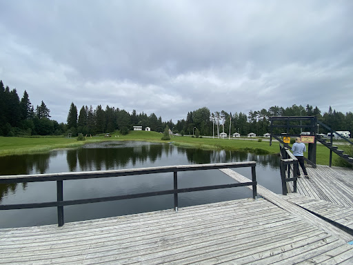 Read moreVi togs emot i receptionen av den leende ägarinnan och en annan kvinna, ägarinnan cyklade sedan med oss och visade alternativa platser för oss att stå på, blev nära ån som rinner genom campingen. Stor och luftig plats på gräs. En lugn och fin camping, delad av en mindre väg med bara några enstaka bilar som passerade när vi var där. Finns en fin damm, vet inte om det finns fisk att fiska eller om dammen är för bad och för att träna på att paddla, då det låg en kanot precis intill dammen. Många stugor på ena sidan av campingen och framför dem många campingplatser. Finns en liten lekplats. Vi åt hemmagjorda hamburgare i den lilla receptionen/ restaurangen, väldigt goda med olika sallader, dippsås efter eget val och både sötpotatis och pommes till. Vi satt ute och njöt måltiden på den lilla verandan med utsikt ut mot campingen. Fräscha servicehus, inga "egna" duschutrymmen, omklädning görs i rummet utanför. Här går det att tömma både gråvatten och latrin och fylla på med färskvatten. Vill man ha lugn och ro är denna camping ett bra...