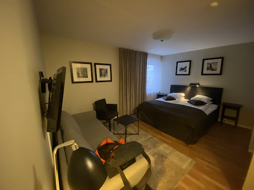 Read moreService ok, location very good and ok atmosphere. Cheap interior, probably Ikea, breakfast dull and too simple without any variation during our stay. But the most annoying thing was the room. Cheap bed with a weak head board, no fridge, no closet, an extra door leading to God knows what but apparently another room for staff party or office or conference space? Anyway I got disturbed from about 0:30 am to 2:30 am by a group of people talking loud and some fiddling with the lock. Not guests I presume cause there's no hotel room door leading anywhere near it. The shower is either cold or hot, no in between temperature. TV had interfered channels and internet was off for two nights. Not...