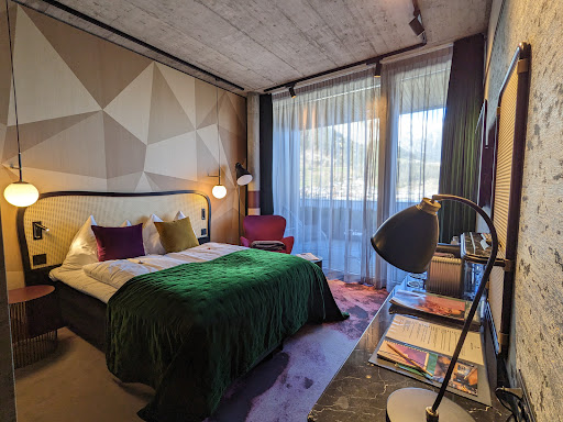 Friendlyness: Welcome at the reception somewhat poor. Corona-handling: Rather than opening more restaurants (they actually have) they do shifts in one restaurant. As a hotel guest, you should expect that it won't be a problem to get food at different times. Unfortunately, there was only one time slot at 6:15pm available, which is not acceptable. We ate from the short bar menue, which brings me to the next point. Service and price bar: If you sit down as a hotel guest in the bar, you expect some attention or at least a sign that they've seen you in the first few minutes, which was not the case, even when they had not much people there. We went there for some food which was not accessible in the restaurant. Secondly, when you request for regular fries with the Burger, and they still bring you the sweet fries you explicitly did not order, take back the whole menue and excuse properly rather than saying 'i'm new here'. Additionally, if you pay 34 Swiss for a Burger, you expect this to be above average, which is not the case at all (meat and sides). Bar service: Only one person for all guests there. How long does it take to shake a nice Negroni, not as short as it took here i can tell. Broken glasses: No fresh pressed juices is not yet a problem for a four star, the selection was good. However, my girl and I both had broken glasses and after drinking there was glass spun off on my plate. Dinner Deli Service: Ordering a tatar, one should assume that butter, cuttlery, tabasco and salt is on the table with or before the meal, especially when you ask for it upfront. And, if you drink wine by the glass, you should expect the glass to remain on the table at least until it is empty, or even beyond. Service personal that does take clients glasses without asking is just poorly educated or well underpaid. There were certain smaller things which did not make us very happy here, especially when it is Corona and you could expect service to take care of the guests still coming.