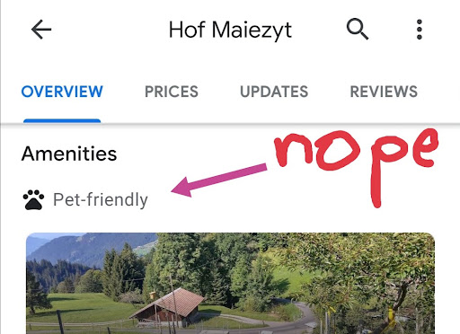Read moreWir haben die Ferienwohnung als Gruppe für ein Retreat-Wochenende der Universität Zürich gebucht und wurden leider sehr enttäuscht. Die Küche hat nicht ordentlich funktioniert (Herd, Kaffeemaschine, Wasserhahn fiel auseinander) und die Buchung war eine absolute Katastrophe. Nachdem uns versichert worden war, dass wir als Gruppe wirklich niemanden stören (wir wollten eigentlich die etwas abgelegene Hütte buchen) haben wir eingewilligt. Das war ein Fehler. Das Haus ist absolut hellhörig und wirklich jeder Schritt nach 22 Uhr wird wahrgenommen. Die Eigentümer versicherten uns, dass dann am Samstag doch nur ein Pärchen da wäre, dass ausgegangen sei und als wir Musik anmachten tauchten plötzlich mehrere Gäste auf um sich (zu recht) zu beschwerden. Die Eigentümer waren da natürlich nicht mehr da und überliessen die Gäste ihrem Konflikt. Schlussendlich mussten wir die Abrechnung am Ende vom Rechtsdienst der Universität prüfen lassen und einen Vergleich anstreben, da hier auf einmal völlig überzogene Preise verlangt wurden. Unter falschen Versprechungen hingelockt, am Ort selbst veralbert worden und später noch bei der Abrechnung grosse Probleme gehabt... diesen Ort kann und werde ich an der Uni Zürich und in unseren Forschungsinstituten...