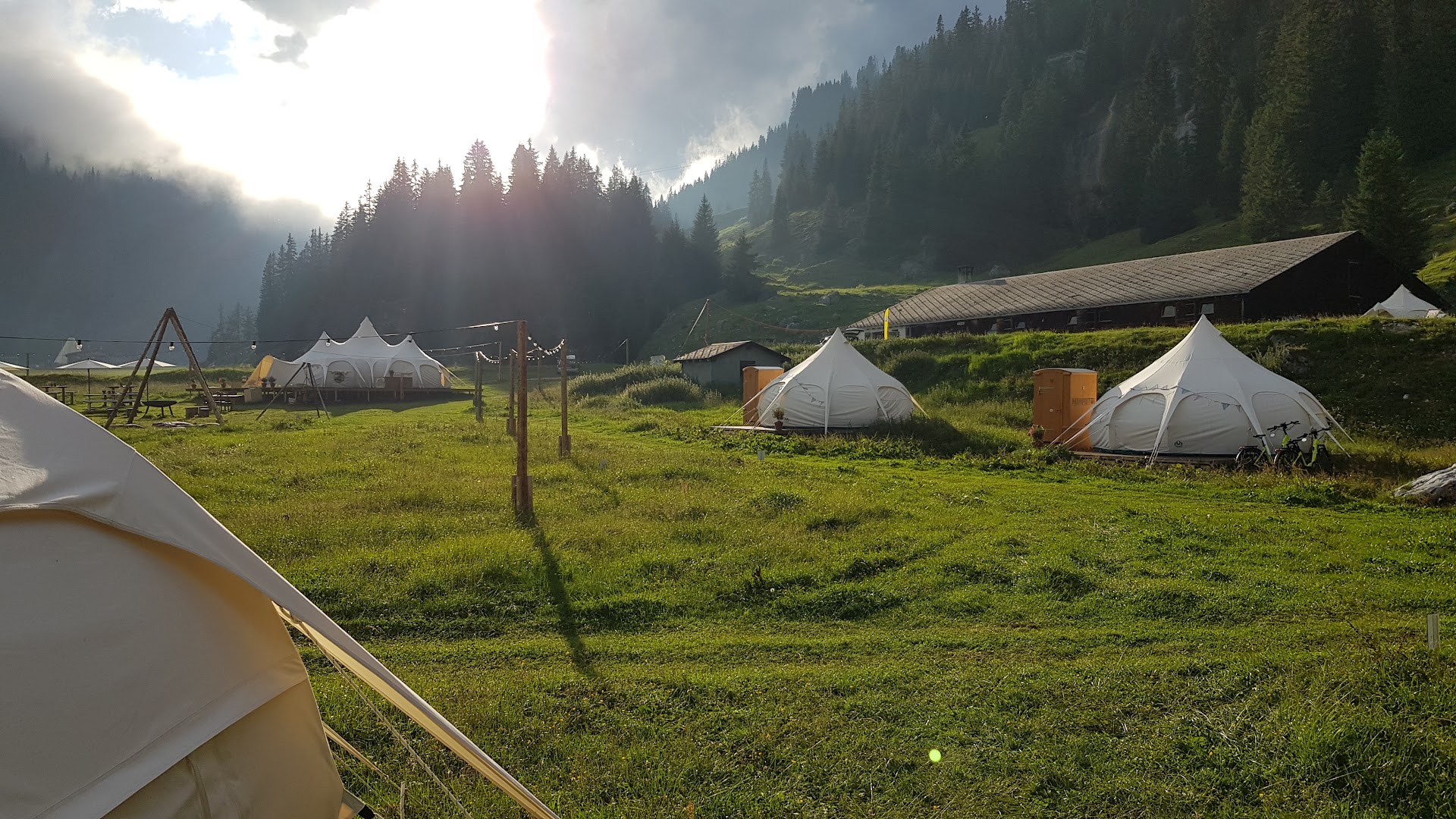 The good /very good Stunning scenery and location *Most amazing cool tents + visually appealing *Beautiful spacious tents well 🏕️🏖️ appointed with comfortable bed, lights, power and (yes!) pod coffee machine Literally over the fence is a Marmot reserve (Müngga) so they are visible and audible each morning. Priceless for this alone. Tents 12-18 open facing the Müngga. *Central fire space for eating around the fire under the stars. (BYO MARSHMALLOWS) Wet weather dinner is at La Vacca (the cool teepee restaurant bar that you'd know if you ski Flims Laax Favela (;-). .... But they dudes running forgot to mention that and we walked in the rain after finding out from other guests. *Great Raclette. Ignore comments that suggest a raclette needs to be perfect. It's camping... I had a lot for trouble with the website trouble booking (not due to inexperience web booking). Called the TCS helpline and it was great. Very friendly. But the website hangs when you try to book, do try several browsers and devices before giving up. Clear cookies. Reboot try again! eventually.... 😎 Communal lounge tent with open bar, drinks fridge and board games. Music. *Heater It's full board breakfast and dinner on-site. Mini picnic lunch provided perfect for your day trip or hike. * the Land Jaeger salami is great.